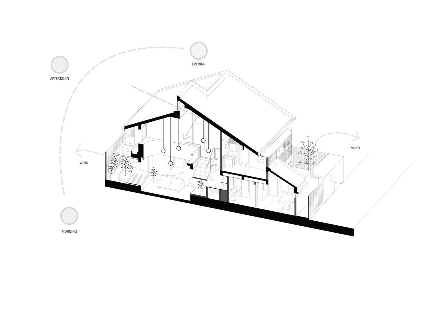 Tính toán dựa trên đường đi của mặt trời, ánh sáng sẽ len lỏi cả ngày trong không gian ngôi nhà.