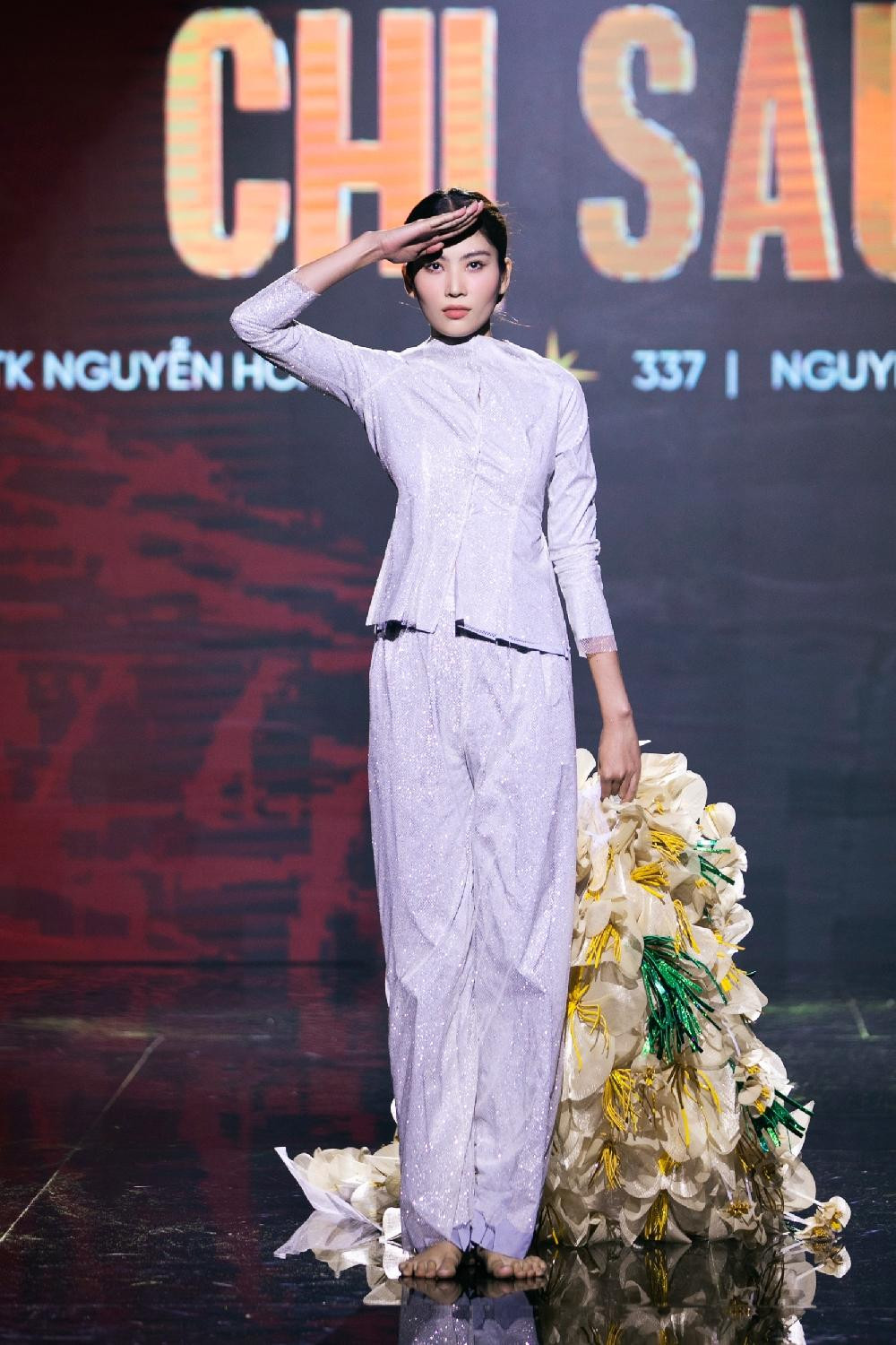 Bộ trang phục Chị Sáu của Nguyễn Hoàng Gia lấy cảm hứng từ Nữ anh hùng Liệt sĩ Võ Thị Sáu qua phần trình diễn nhập tâm của thí sinh Nguyễn Thị Lệ Nam (SBD 337).