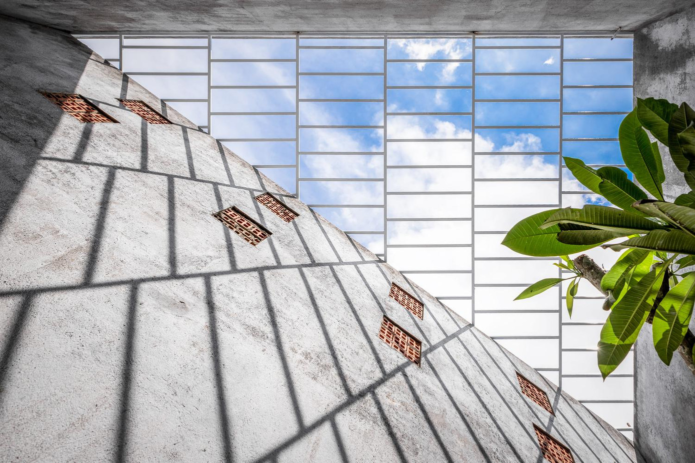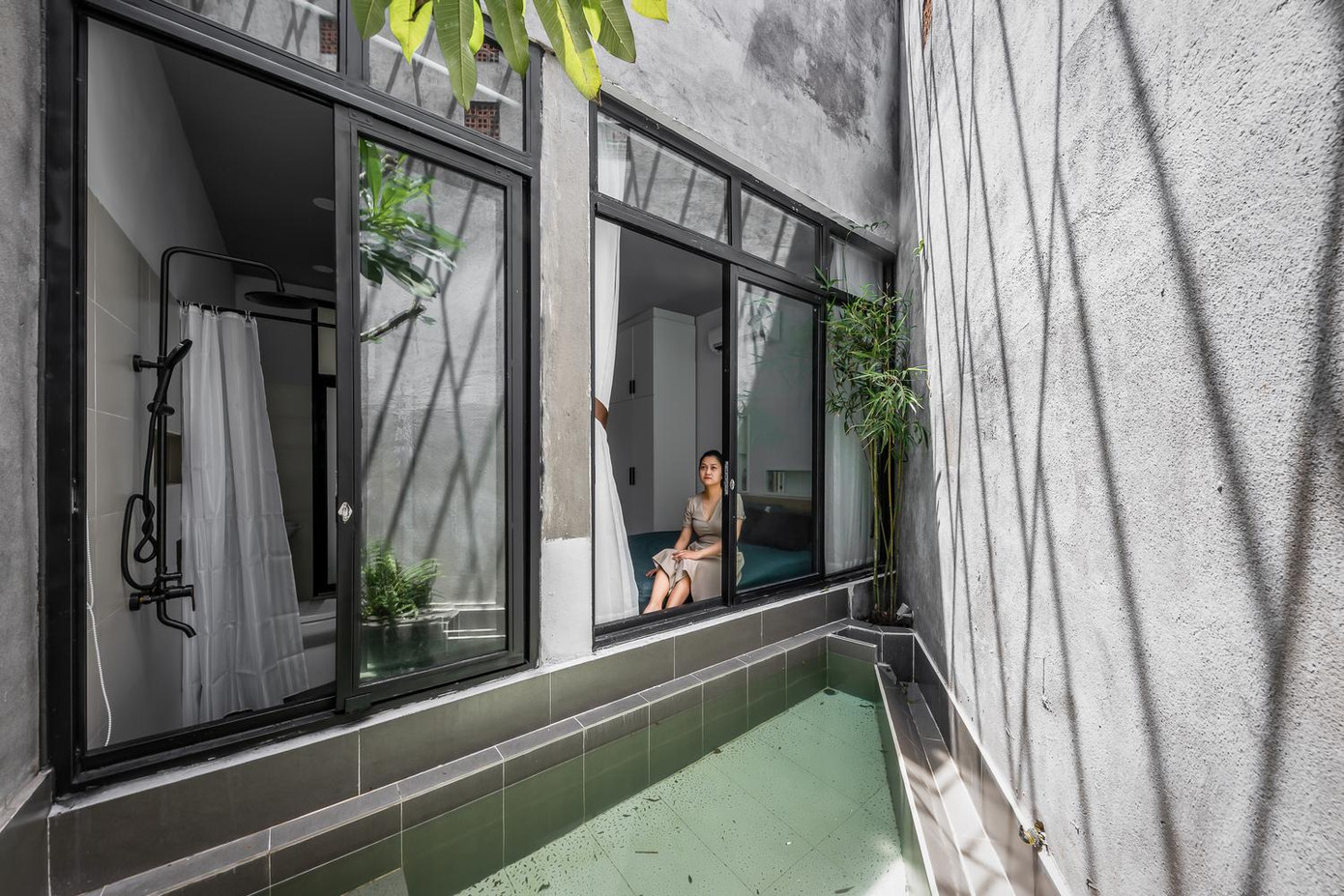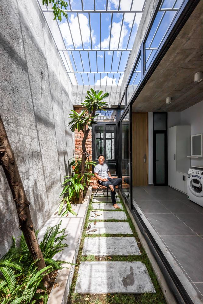 | Khu vực sân giữa và sân sau hoàn toàn lộ thiên, chỉ được ngăn cách bằng các nan sắt chống trộm, do đó ở trong nhà nhưng gia chủ vẫn hoàn toàn cảm nhận được sự thay đổi của thời tiết. |