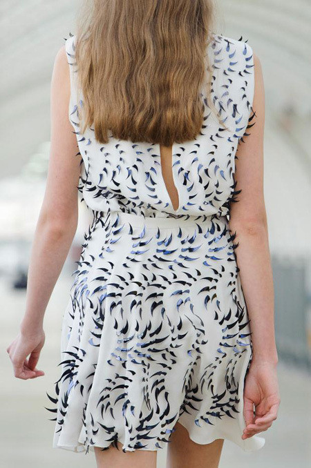 Nhà thiết kế người Hà Lan sử dụng chất liệu đặc biệt là silicon, tạo thành những màng bọc ngoài cơ thể. Thậm chí, thay vì sử dụng lông vũ, Iris lại tạo ra chúng bằng cách dùng kỹ thuật cắt laser để xử lý chất liệu triacetate.