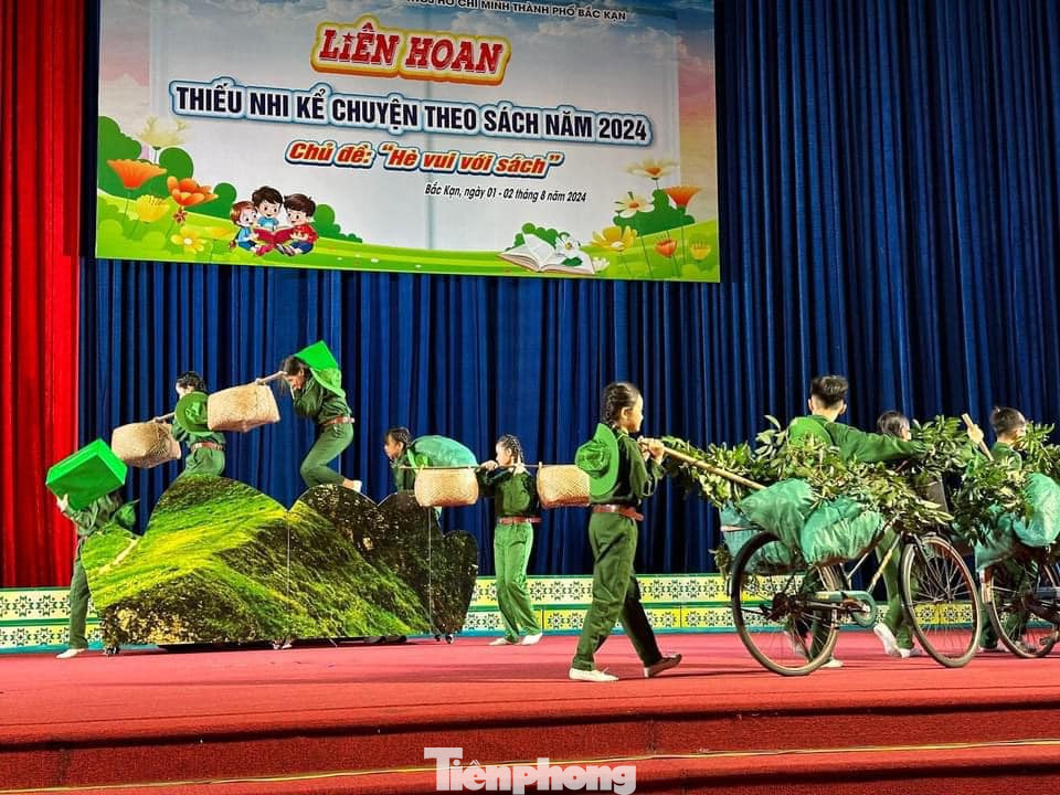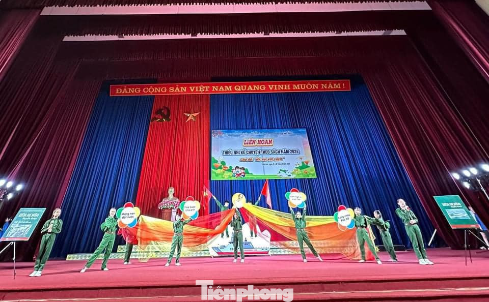 | Các đội thi thành thục các tiết mục sân khấu hóa các câu chuyện theo sách. Ảnh: M.L |