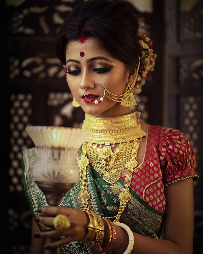 Không chỉ có điểm nhấn là đôi mắt to tròn, sắc sảo, Joyeeta còn có gương mặt khả ái. Khoác lên mình bộ trang phục truyền thống, nở nụ cười tươi trước ống kính, người đẹp Ấn Độ đã "đốn tim" không ít người.