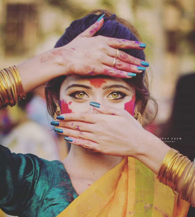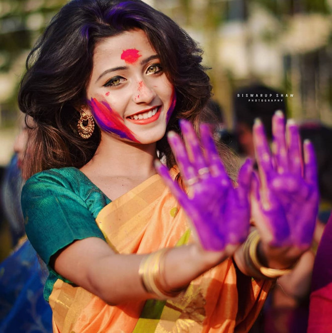 Tháng 3 vừa qua, Joyeeta Sanyal trở thành hiện tượng mạng với những khoảnh khắc đẹp xuất thần tại Holi Festival - lễ hội mùa xuân của người Ấn Độ. Bộ ảnh được ghi lại và chia sẻ bởi nhiếp ảnh gia Biswarup Shaw.