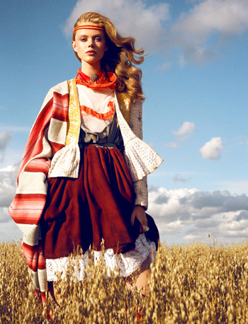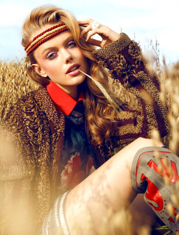 TPO - Hóa thân thành một thiếu nữ Bohemian xinh đẹp giữa cánh đồng lúa mạch rộng lớn, siêu mẫu Frida Gustavsson mang đến một câu chuyện đầy thơ mộng trong bộ ảnh mới trên tạp chí Elle Thụy Điển, số tháng 11/2010.