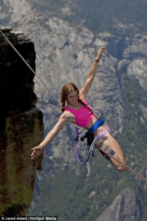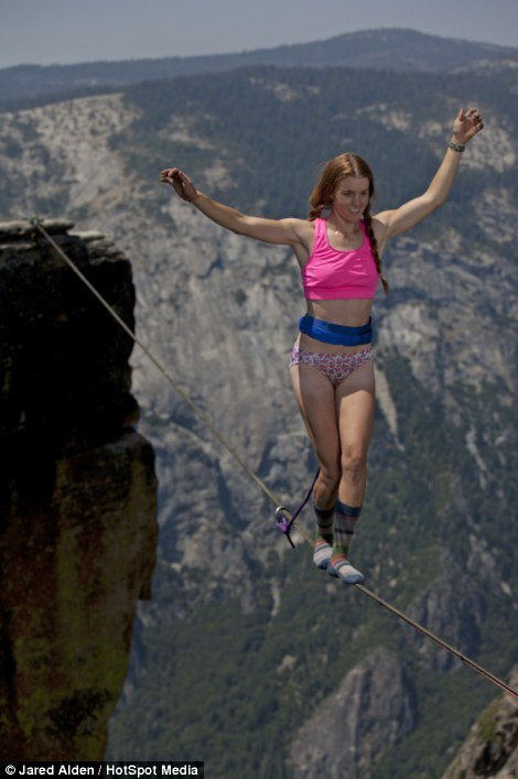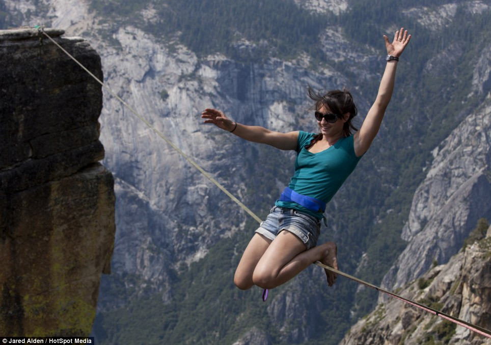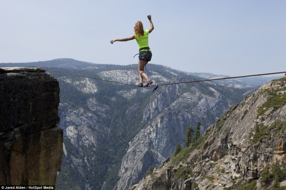 TPO – Hai cô gái Emily Sukiennick và Hayley Ashburn đã đi và biểu diễn trên một sợi dây nối giữa các dãy núi cao 1000 mét ở Taft Point, California (Mỹ).
