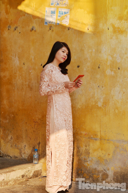 Áo dài truyền thống là trang phục được nhiều cô gái yêu thích khi thực hiện bộ ảnh sáng mồng 1 Tết.