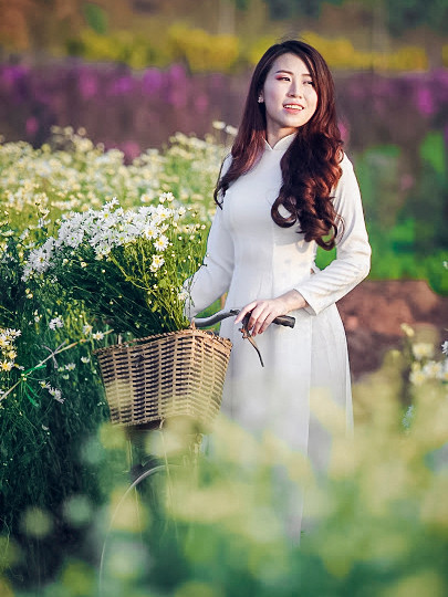Vì vậy đến các vườn hoa dễ dàng bắt gặp những nhóm bạn trẻ điệu đàng tạo dáng. Trong đó, nhiều thiếu nữ chọn trang phục áo dài trắng tinh khôi để lưu giữ những hình ảnh đẹp gắn với mùa hoa mới đến
