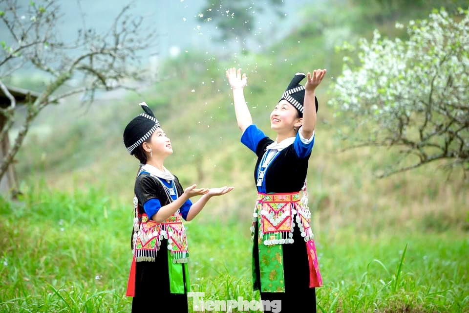 Những em bé vui đùa giữa những vườn mận nở rộ giữa núi rừng đẹp đến nao lòng.
