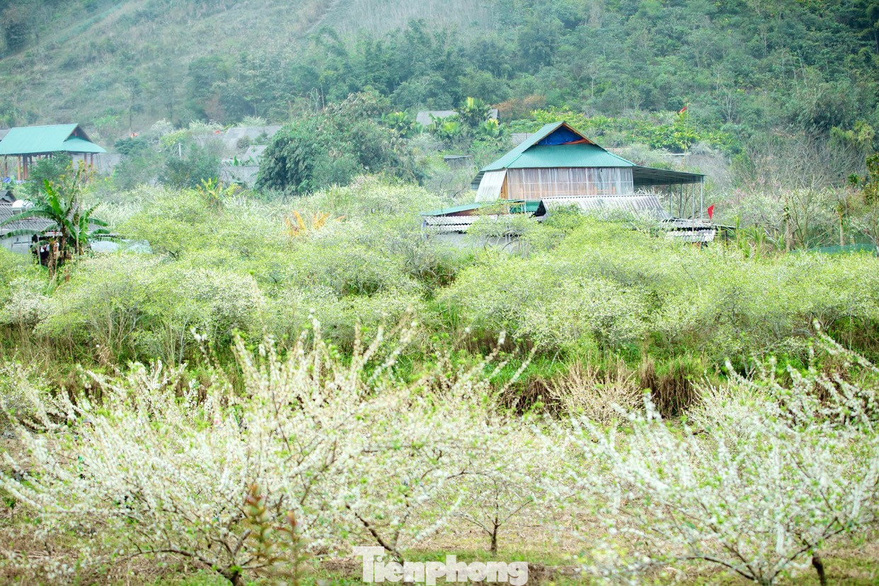 Những vườn mận đang khoe sắc bên những mái nhà của người Mông ở xã Mường Lống.