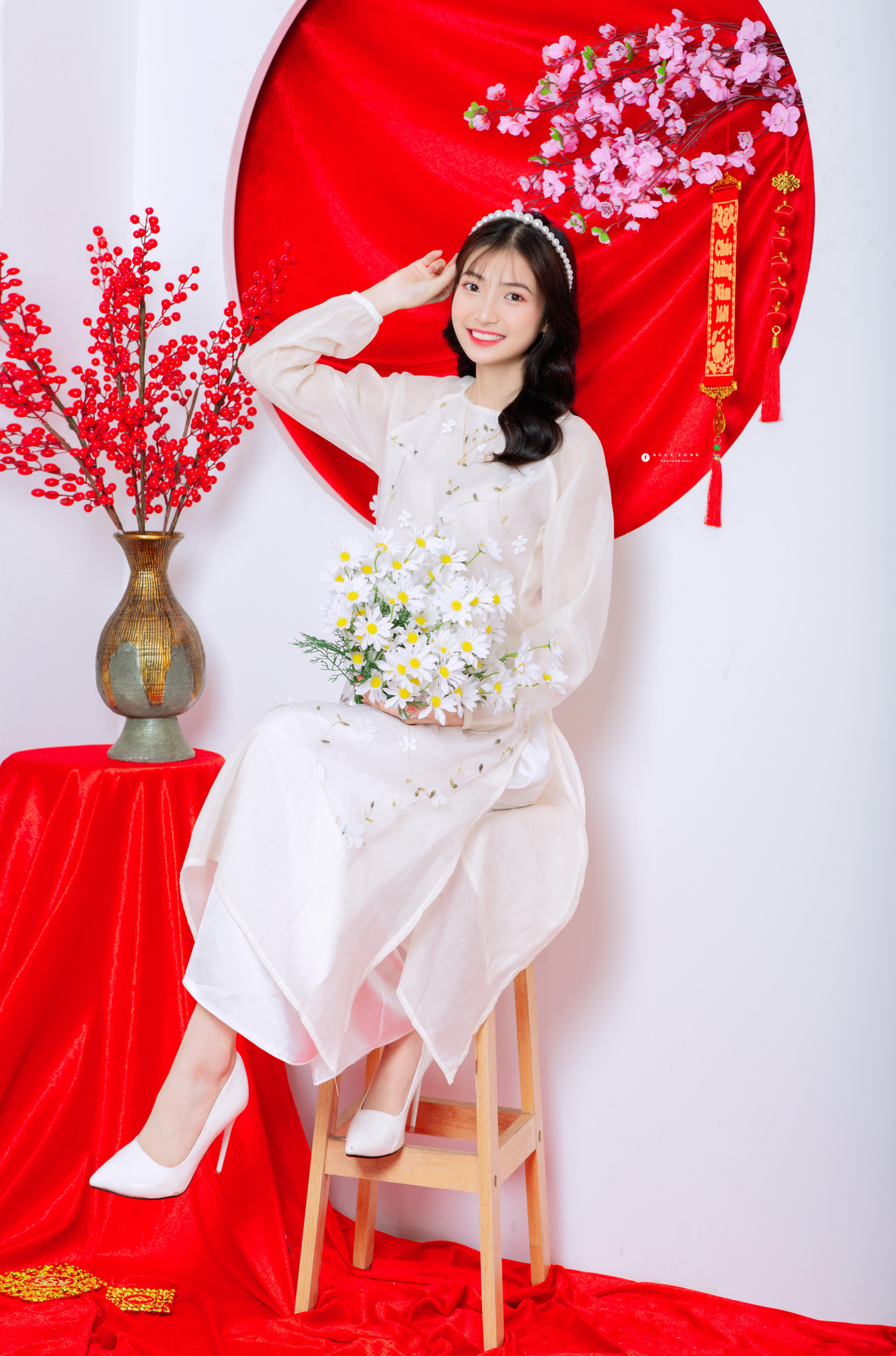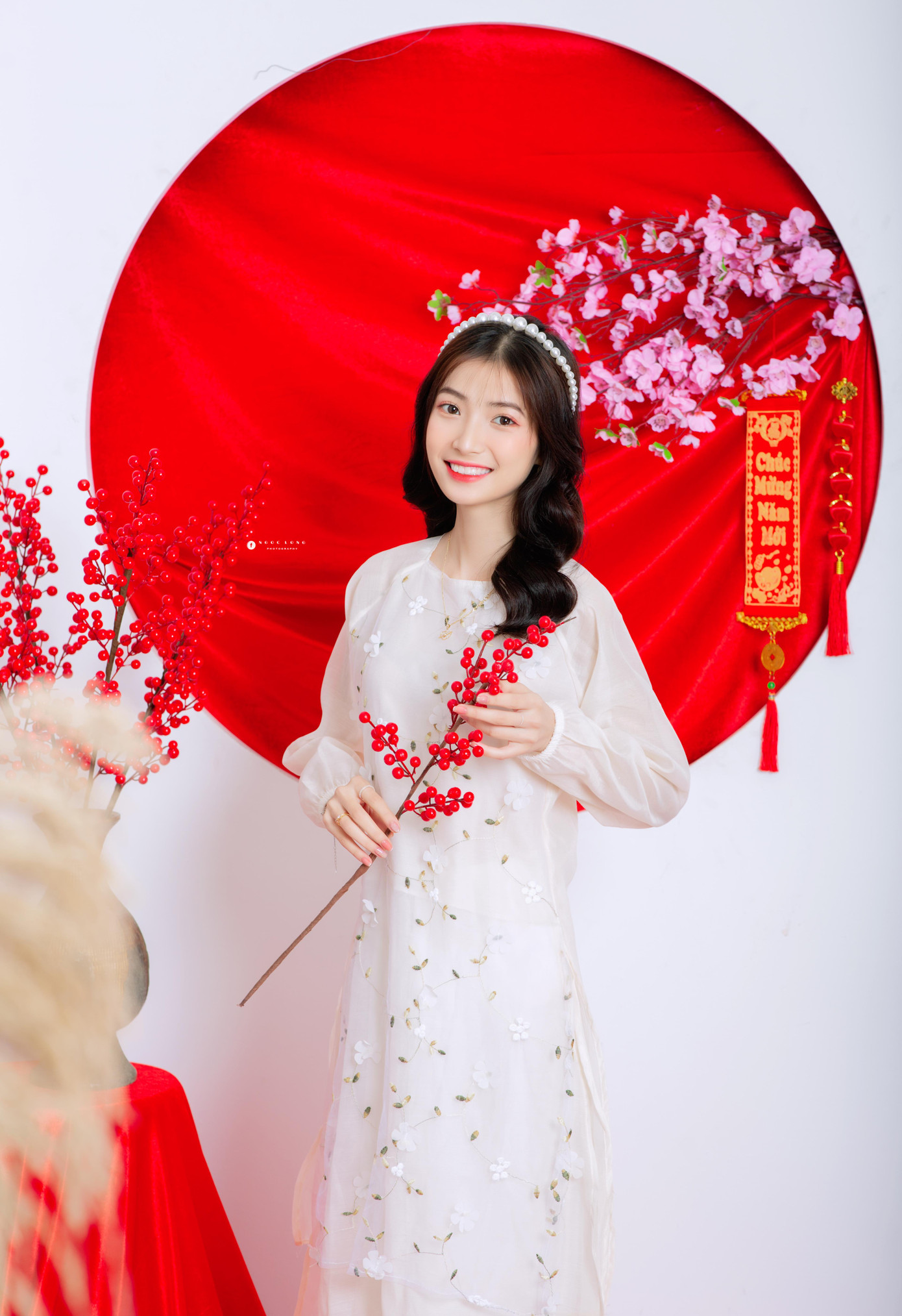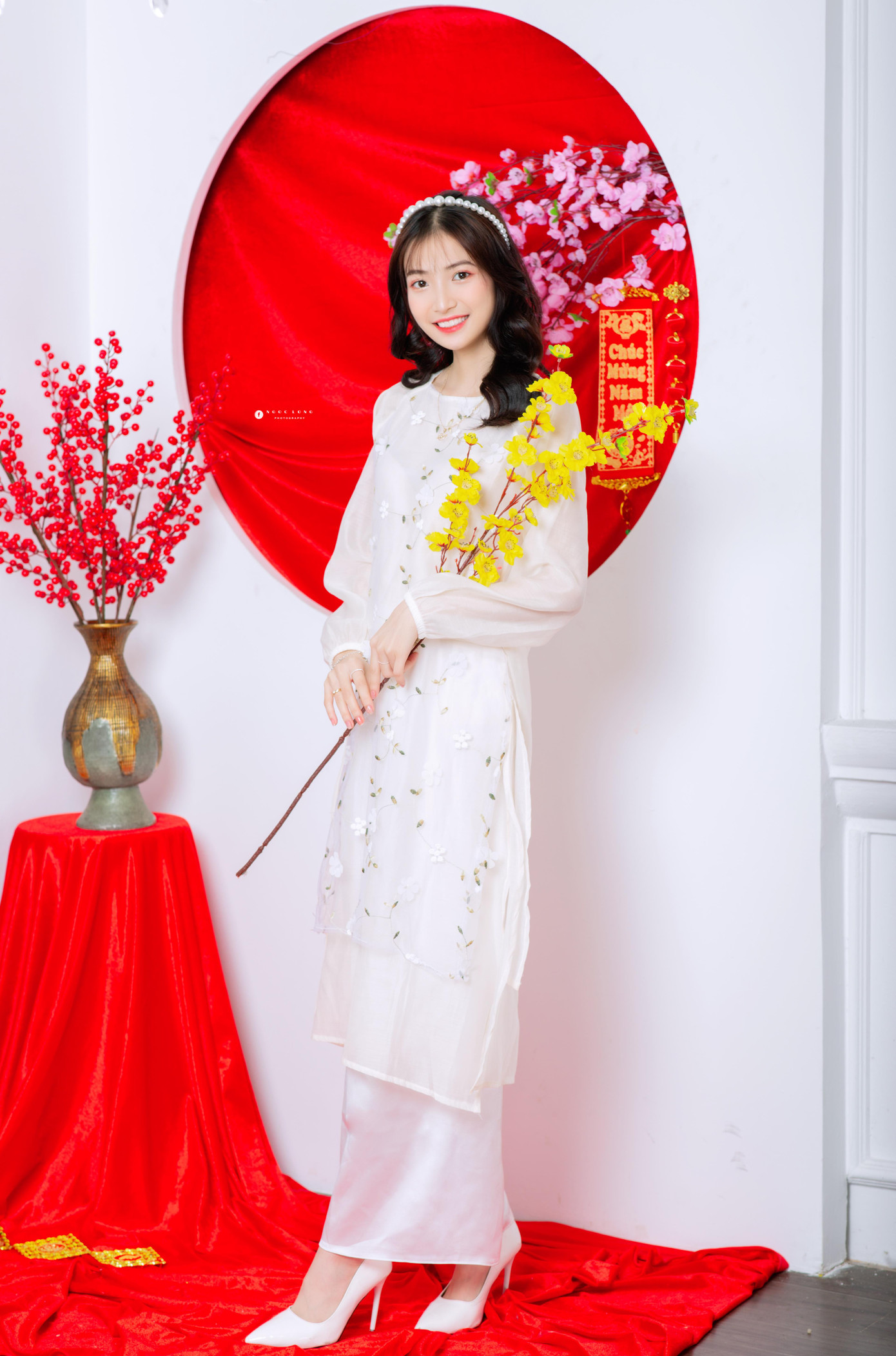 Trong khoảnh khắc chào năm mới, Bình Bơ khiến cộng đồng mạng khó lòng rời mắt khi xuất hiện trong tà áo dài thướt tha. Qua bộ ảnh này, nữ sinh muốn truyền tải sự vui vẻ, hạnh phúc và may mắn đến mọi người.