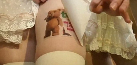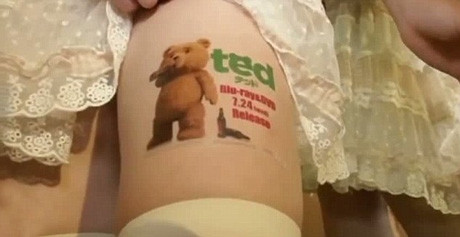 Cách đây khoảng nửa năm, ban nhạc rock của Mỹ có tên “Green Day” cũng quyết định chọn hình thức quảng cáo trên đùi để giới thiệu CD album mới của họ. Và mới đây nhất, một DVD phim mới có tên “Ted” cũng gây được chú ý tại Tokyo với cách chào hàng rất thu hút nam giới này.