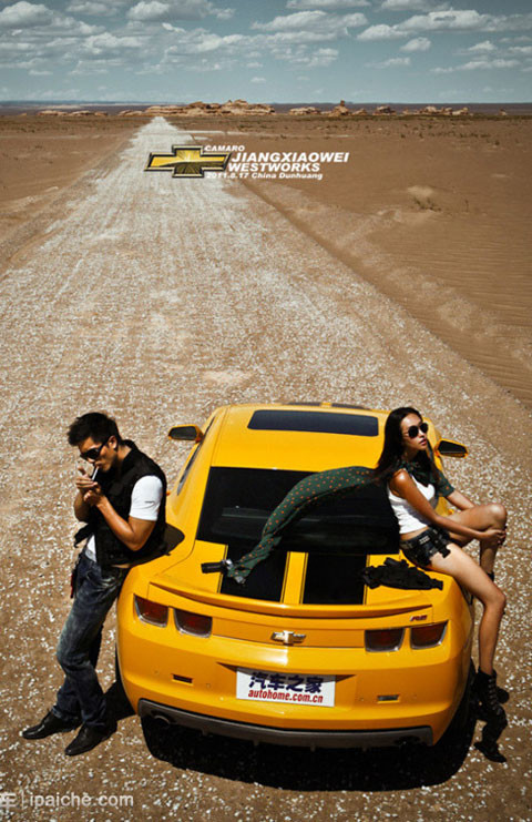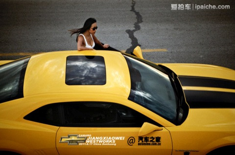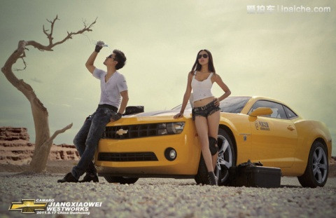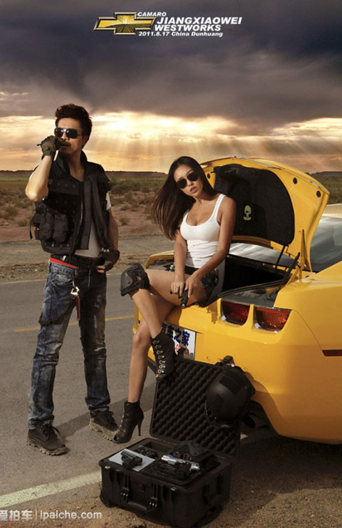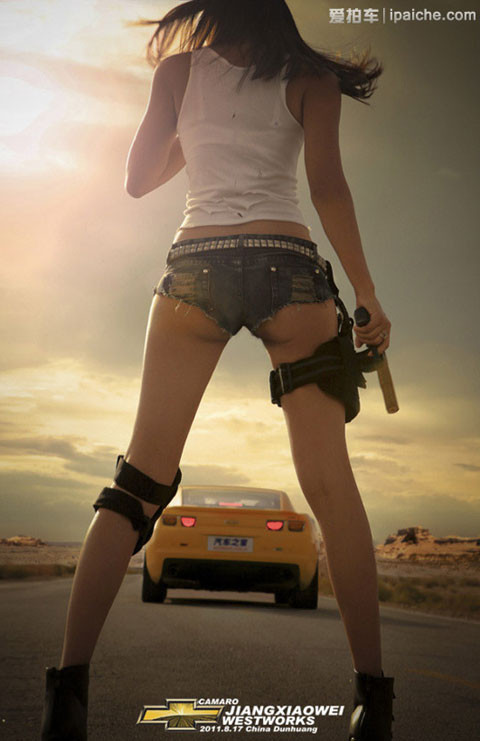 TPO - Cùng ngắm thiếu nữ với trang phục bụi bặm và vẻ sexy khó cưỡng bên cạnh chiếc xe cơ bắp Chevy Camaro màu vàng rực.