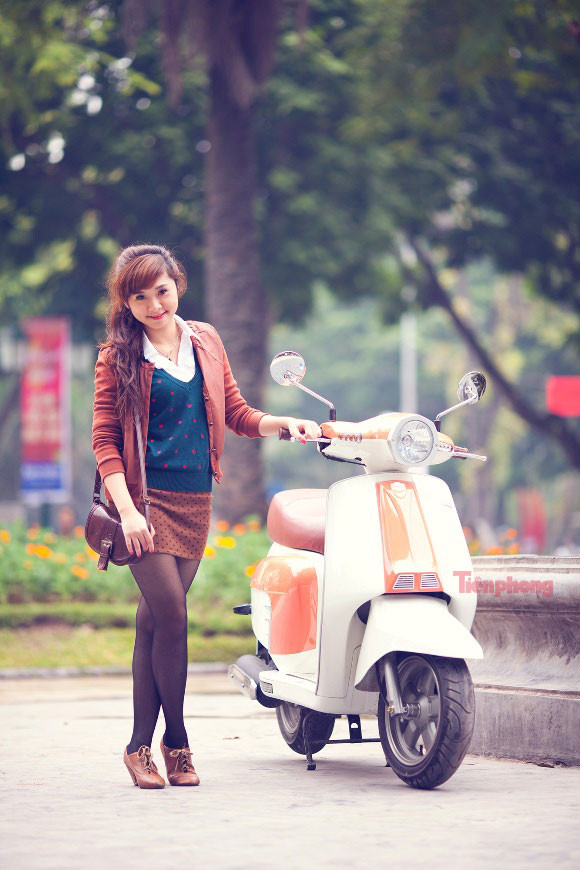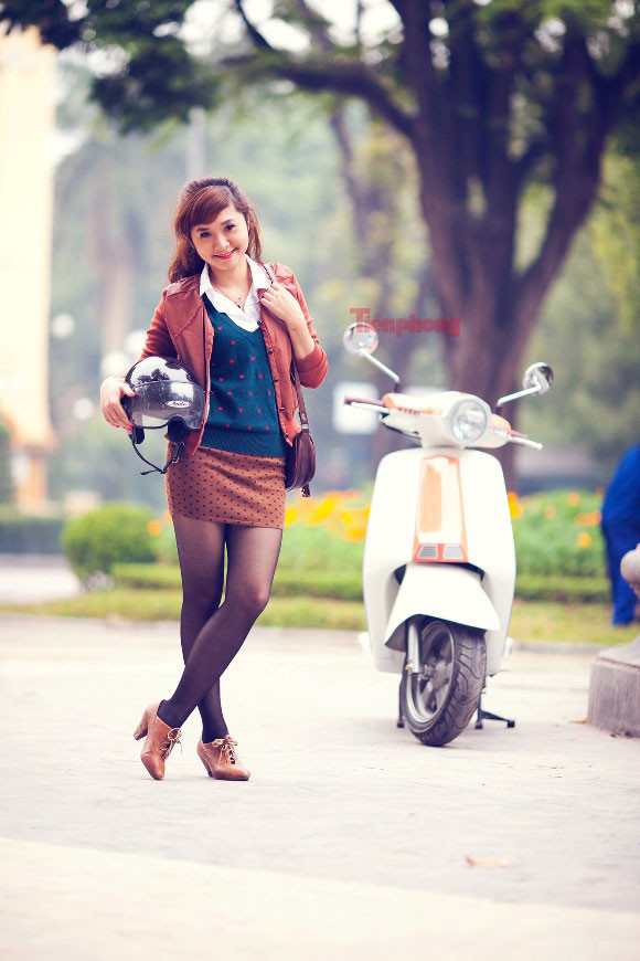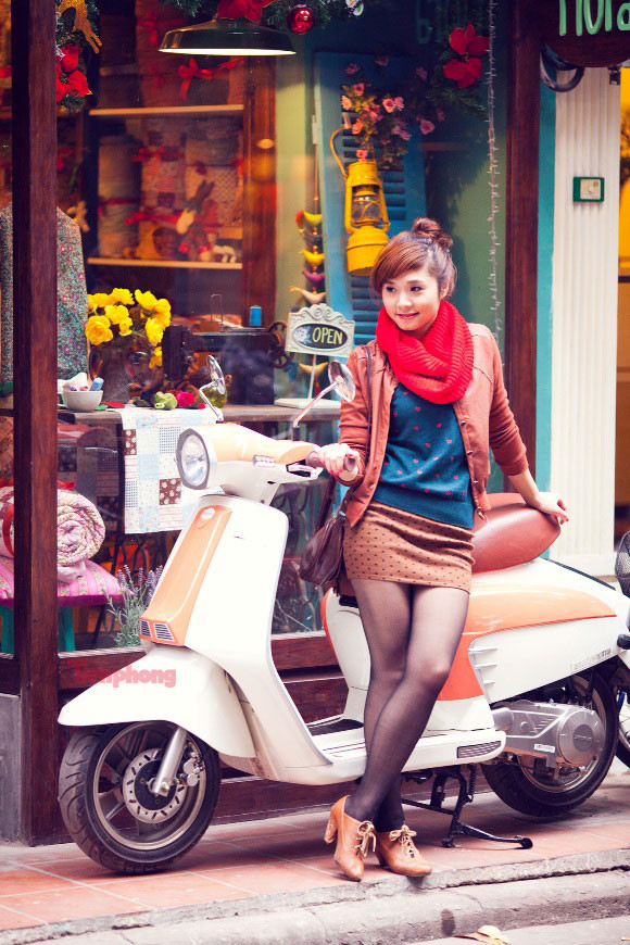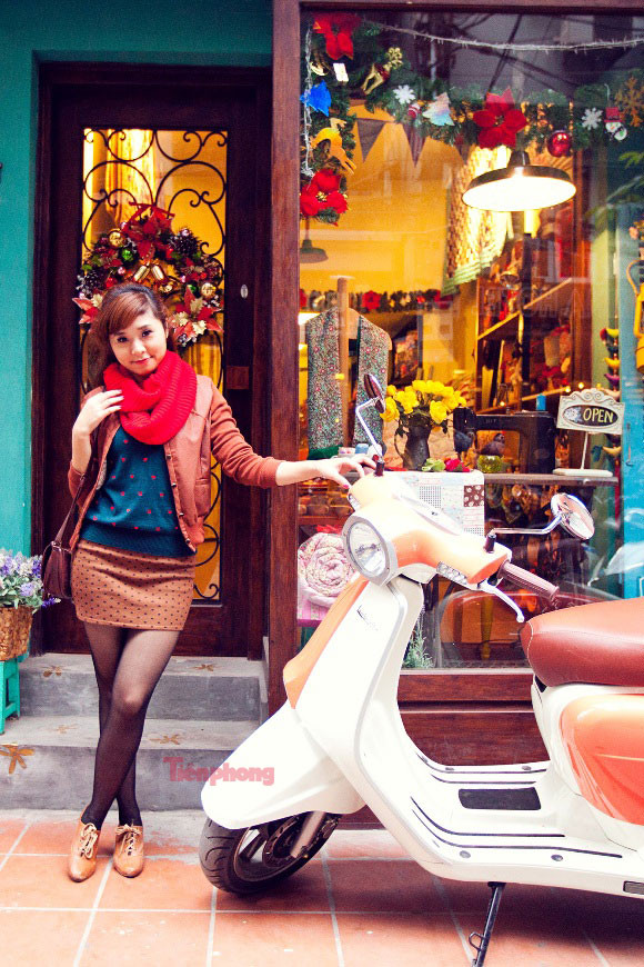 TPO - Thiếu nữ Hà Nội xinh đẹp tạo dáng bên xe ga sang trọng và thời trang Lambretta LN125, xua bớt cái lạnh giá ngày cuối năm.