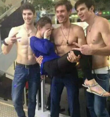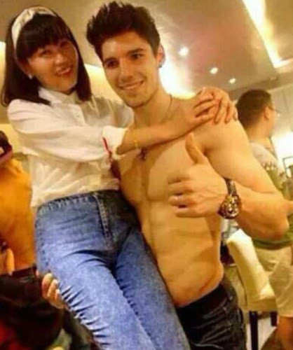 Một nhà hàng ở Thành Đô, Trung Quốc đã thuê những mẫu nam nước ngoài cởi trần thân mật với các khách hàng để thu hút khách nhiều hơn. Những thiếu nữ Trung Quốc này có vẻ rất phấn khích với dịch vụ lạ lùng này, họ đã chụp ảnh lại và đăng tải trên trang cá nhân. Ngay khi những hình ảnh này được đăng tải đã thu hút sự chú ý của dư luận.