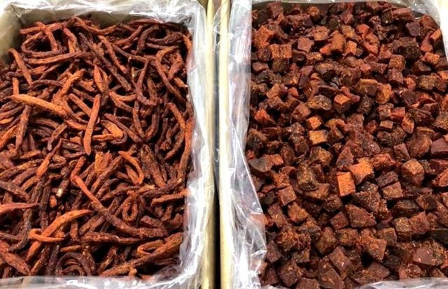 Thế nhưng, bên cạnh loại thịt bò khô có giá vài trăm ngàn đồng mỗi cân, dịp này trên thị trường còn xuất hiện tràn lan loại thịt bò khô có giá siêu rẻ. Đáng chú ý, các đầu mối đổ sỉ cho biết, họ có thể cung cấp từ đầu tạ đến đầu tấn nếu khách có nhu cầu.