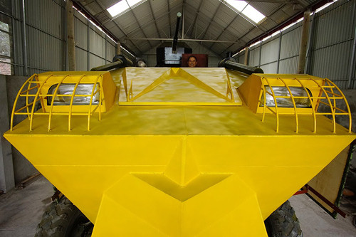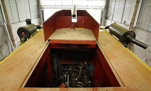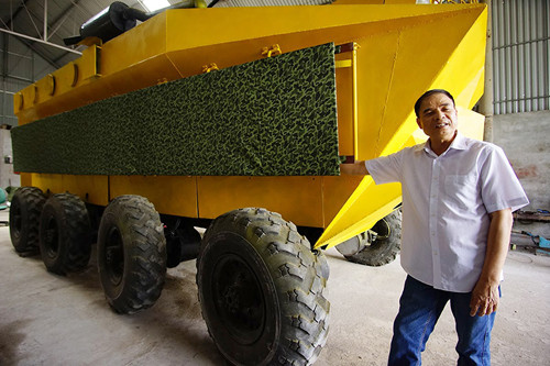 “Khi hoàn thiện, phía bên trong khoang lái, tôi sẽ lắp đặt màn hình 13 inch để lái xe có thể quan sát 4 góc mà không cần mở nắp. Hệ thống điều khiển cũng sẽ được thay thế bằng điện tử chứ không phải bằng cơ như bây giờ.” Ông Chính hồ hởi nói.