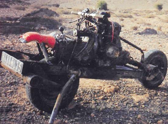 Sau khi xem xét kỹ càng những gì còn lại từ đống sắt vụn của chiếc Citroën 2CV, cũng như xem xét kỹ các yếu tố vận hành dựa trên những gì có thể tận dụng được, Emile Leray quyết định “chế” một chiếc xe gắn máy để làm phương tiện để vượt qua đoạn đường còn lại. Ông đã mất tới 12 ngày để hoàn thành việc chế tạo chiếc xe từ đống đổ nát của chiếc Citroën 2CV; vứt bỏ toàn bộ vỏ xe, lấy hai bánh, rút ngắn khung xe, sử dụng động cơ và hộp số của chiếc Citroën 2CV may mắn còn dùng được sau tai nạn, lấy càng chữ A giảm xóc trước làm gá đỡ bánh trước, tận dụng cản sau để làm ghế ngồi...