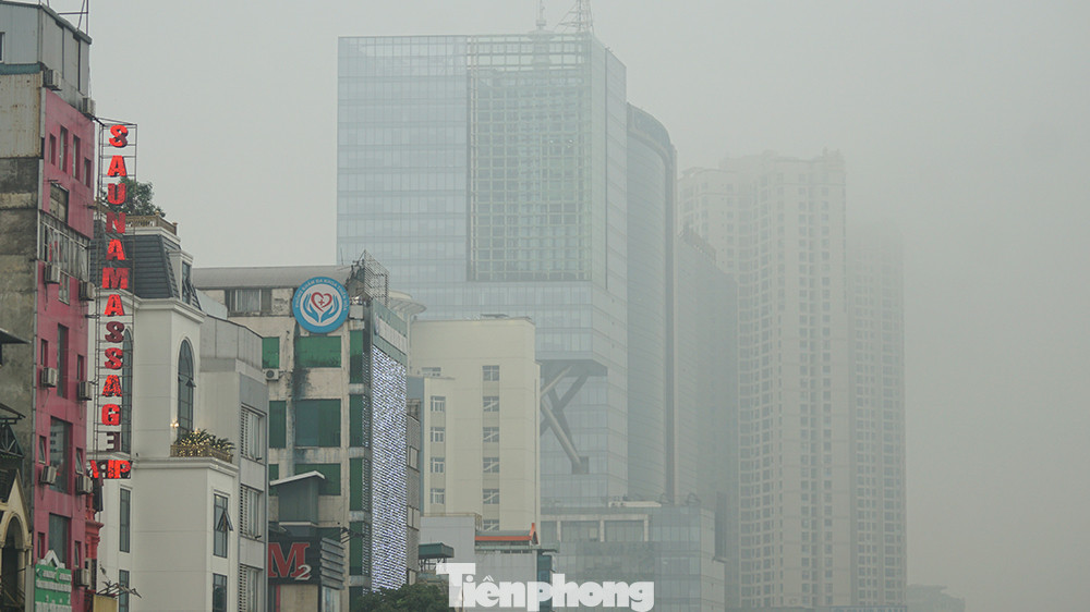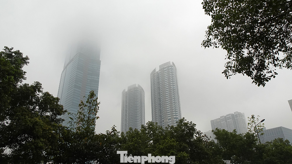 Nhiều tòa nhà cao tầng ở Hà Nội chìm trong sương mù.