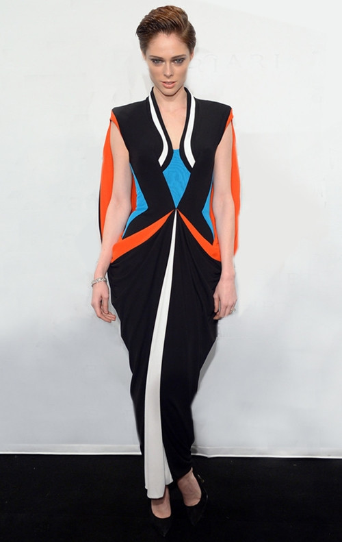 "Người mẫu của năm" do Vogue Paris bình chọn năm 2012 gây chú ý cùng trang phục color block Jean Paul Gaultier trong một đêm gala.