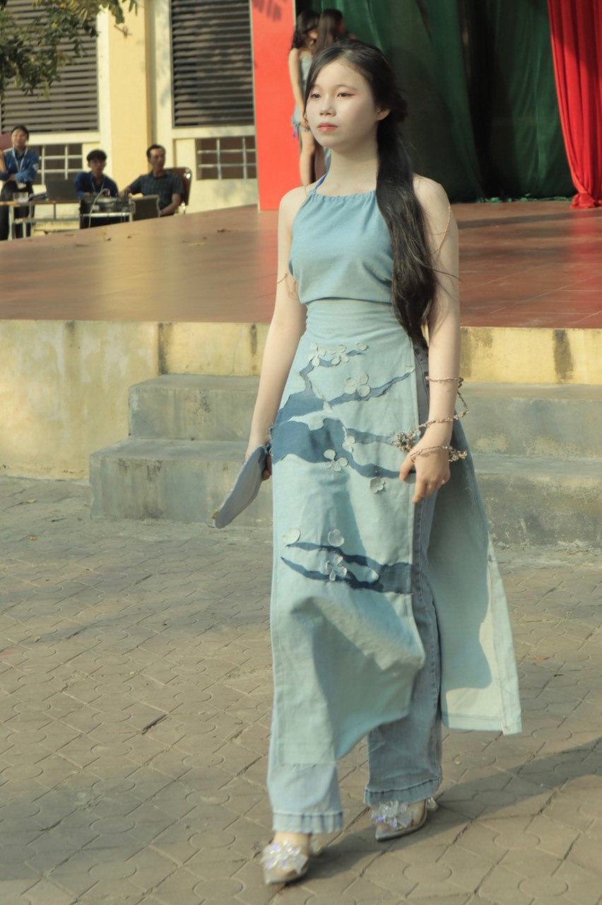 TPO - Nhóm học sinh lớp 11 ở Hà Tĩnh đã sáng tạo vải jeans tái chế thành bộ sưu tập thời trang đẹp mắt độc đáo.
