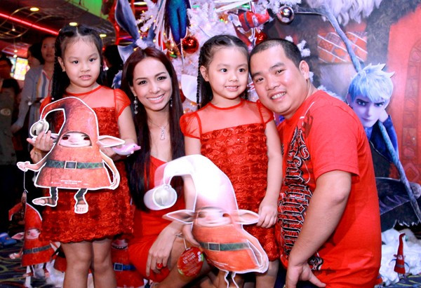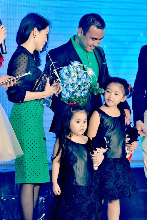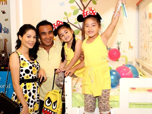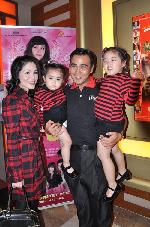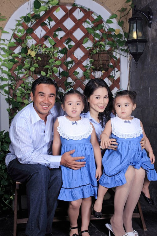 Không kém cạnh gia đình cựu siêu mẫu - nhạc sĩ, Quyền Linh cùng vợ và các con chuộng những bộ cánh tiệp màu đẹp mắt. Hai cô nhóc Lọ Lem và Hạt Dẻ thường được mẹ trang bị những bộ váy dễ thương, năng động. Bố mẹ của hai nhóc tì cũng rất hợp tông khi đưa hai thiên thần đi sự kiện.