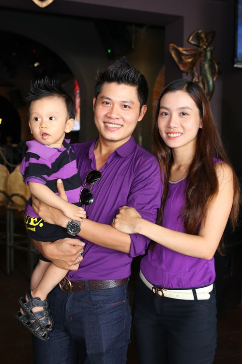 Trong những dịp quan trọng, thời trang gia đình đồng điệu luôn được Ốc chú ý. Cô và con gái chọn màu hồng tím nữ tính còn ông xã và con trai Coca đóng bộ vest nam tính, lịch lãm.