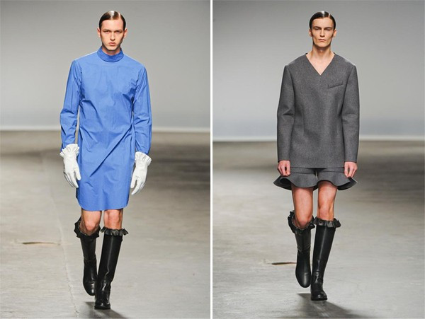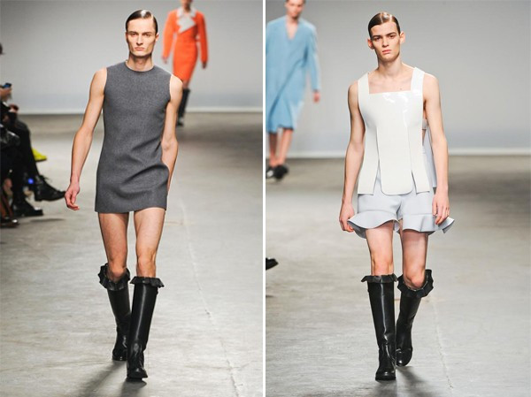 Không nằm ngoài dự đoán, dù chỉ diễn ra trong 3 ngày ngắn ngủi với sự tham gia của 60 thương hiệu nhưng những ấn tượng mà Tuần lễ thời trang nam giới 2013 tại London để lại thì quả là khó quên hơn bao giờ hết. Và có lẽ trong số đó, BST của thương hiệu J.W. Anderson đã khiến công chúng thật sự "mắt chữ O, mồm chữ A" với BST... những chiếc váy ngắn, thậm chí là váy quây. Sự sáng tạo của NTK không chỉ dừng lại ở đó, khi ông cho dàn mẫu nam của mình xỏ chân vào những đôi boots cao đến gối đầy duyên dáng.