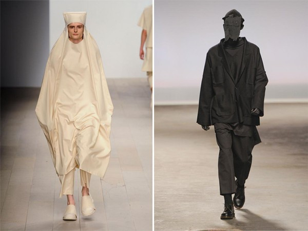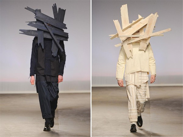 Bên cạnh xu hướng "nữ tính hóa" nam giới, các NTK Anh Quốc đã giành được sự quan tâm của cả thế giới với cái nhìn quái đản của mình. Điển hình là những con mắt choáng váng của khán giả ngay từ show diễn ấn tượng mở màn của MAN, ngay khi các mẫu nam bước ra đường runway với khuôn mặt chằng chịt những mảnh gỗ được ghép lại với nhau và chúng được gọi là... mũ.