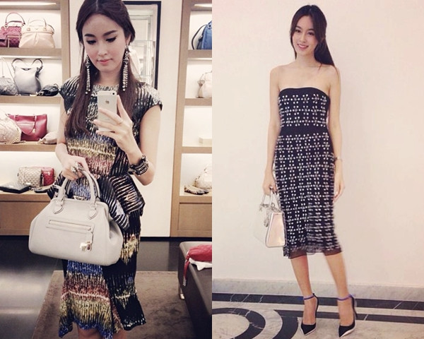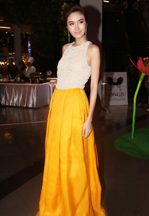 Cô xinh xắn trong những chiếc váy có bộ dài vừa phải, tôn vóc dáng. Sở hữu chiều cao 1m71 và số đo chuẩn mực, mỹ nhân Thái biết tận dụng lợi thế ngoại hình để gây ấn tượng.