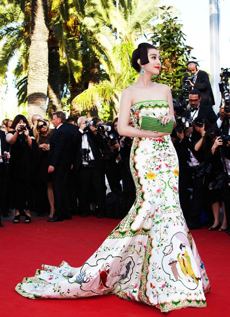 Băng Băng nhiều lần gây ấn tượng với váy áo mang đậm dấu ấn văn hóa Trung Hoa, đưa cô trở thành ngôi sao châu Á nổi bật ở Cannes hay các tuần lễ thời trang.