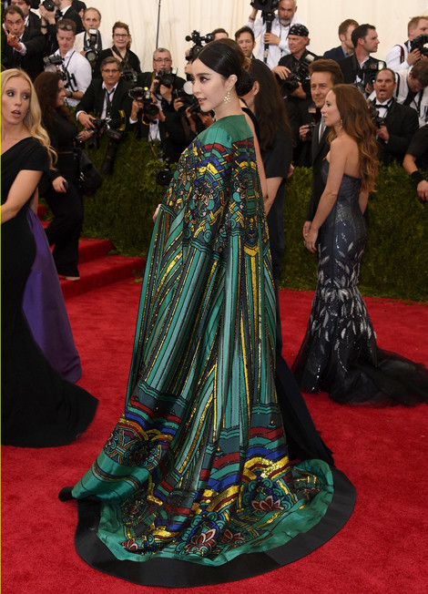 Nữ diễn viên luôn muốn thể hiện xuất xứ châu Á của mình khi dự các sự kiện quốc tế. Trên thảm đỏ Met Gala 2015 - dạ tiệc thời trang lớn nhất thế giới - người đẹp tiếp tục đặt hàng Bốc Kha Văn thiết kế trang phục cho mình.