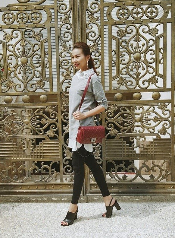Trong ngày tiếp theo, Thanh Hằng vẫn chuộng gam màu trắng - đen và nhấn nhá bằng phụ kiện túi Chanel.