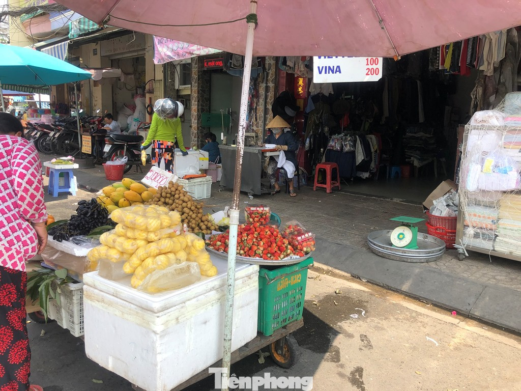 Trong khi đó, tại khu chợ bên hông bến xe Chợ Lớn (Q.5), khá nhiều người bày bán thơm mini Thái Lan ra đường để khách dễ thấy. Tại một quầy kinh doanh trái cây, khá nhiều chị em tụm vào mua thơm có giá chỉ 80.000 đồng/bịch lớn, 40.000 đồng/bịch nhỏ.