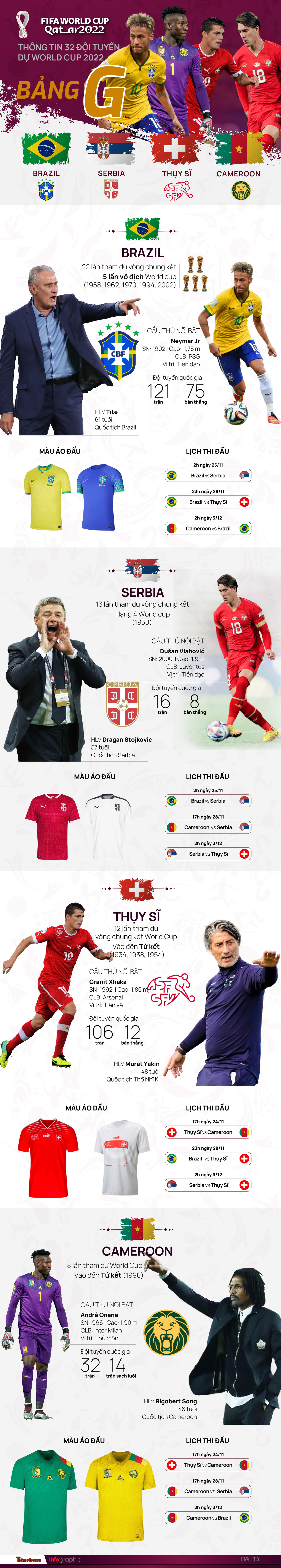 Google News Thông tin 32 đội tuyển dự World Cup 2022: Bảng G chờ Brazil