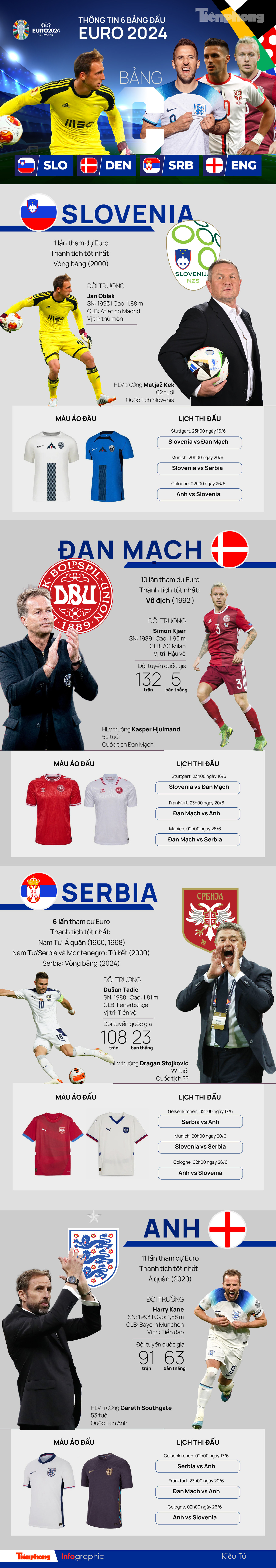 TPO - Bảng C UEFA EURO 2024 có sự góp mặt của 4 đội bóng gồm Slovenia, Đan Mạch, Serbia và Anh. Tuyển Anh, Đan Mạch được đánh giá có khả năng vào vòng trong cao hơn 2 đội còn lại trong bảng.