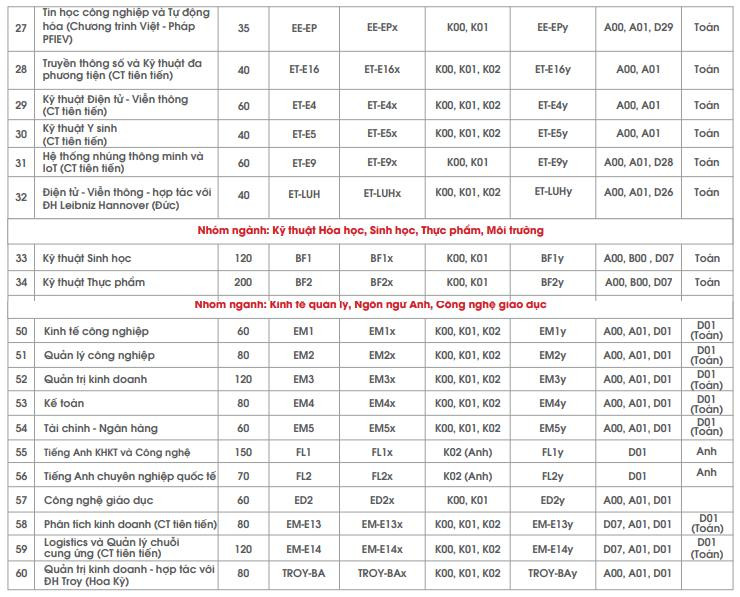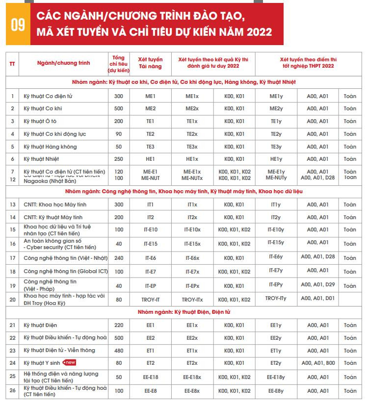 Trường Đại học Bách khoa Hà Nội công bố ngành, chỉ tiêu tuyển sinh năm 2022 mới nhất, theo đó trường đào tạo 60 ngành cụ thể như sau: