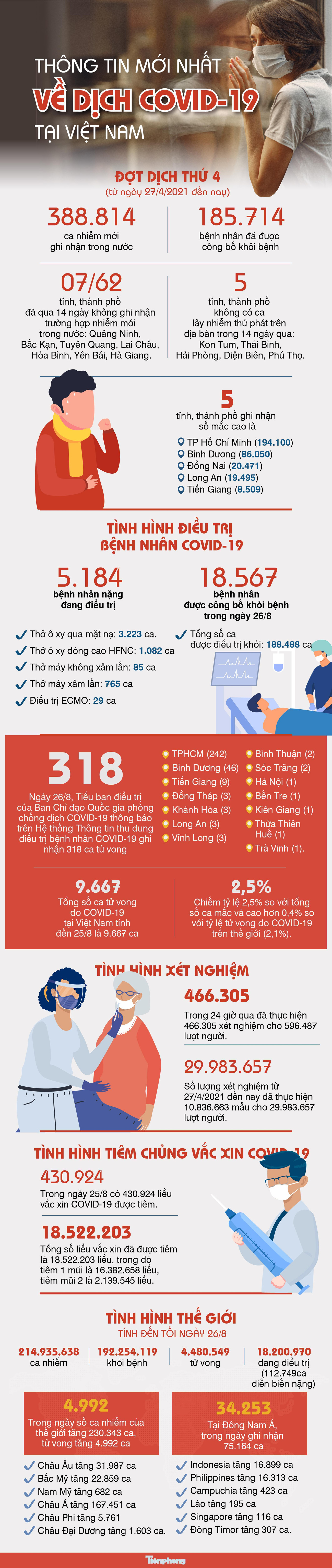 TPO - Kể từ đầu dịch đến nay Việt Nam có 392.938 ca nhiễm, đứng thứ 66/222 quốc gia và vùng lãnh thổ, trong khi với tỷ lệ số ca nhiễm/1 triệu dân, Việt Nam đứng thứ 168/222 quốc gia và vùng lãnh thổ (bình quân cứ 1 triệu người có 3.997 ca nhiễm).