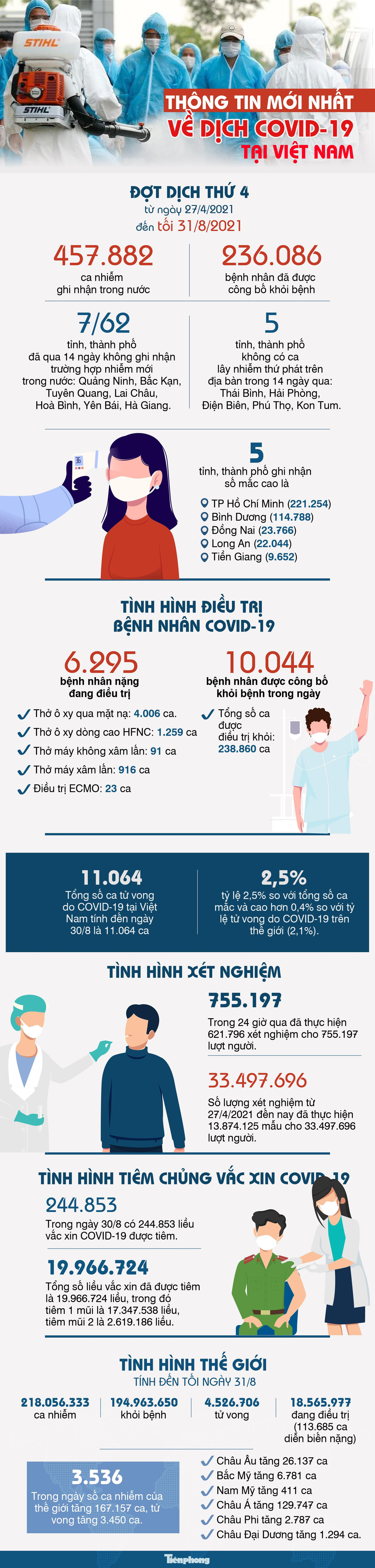 TPO - Kể từ đầu dịch đến nay Việt Nam có 462.096 ca nhiễm, đứng thứ 59/222 quốc gia và vùng lãnh thổ, trong khi với tỷ lệ số ca nhiễm/1 triệu dân, Việt Nam đứng thứ 161/222 quốc gia và vùng lãnh thổ (bình quân cứ 1 triệu người có 4.700 ca nhiễm).