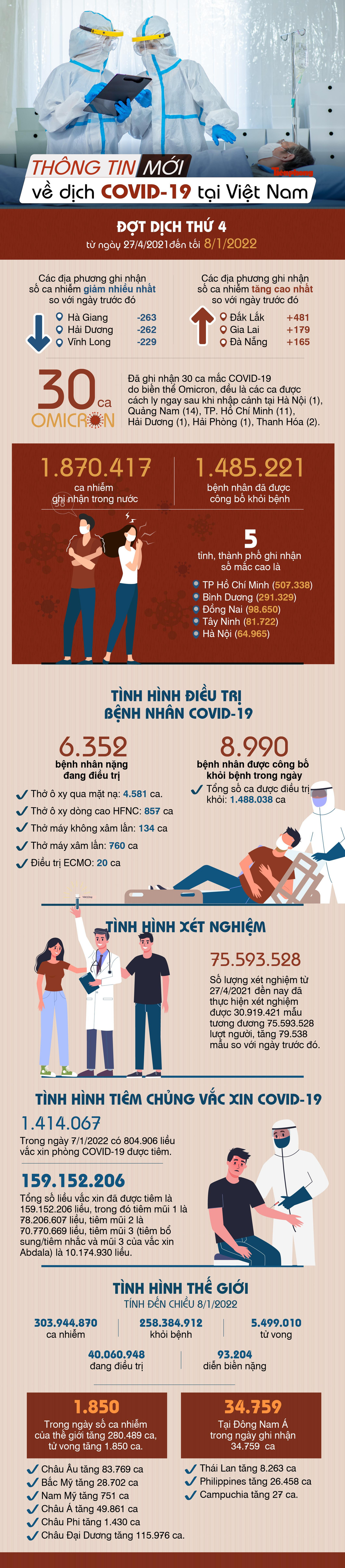 TPO - Kể từ đầu dịch đến nay Việt Nam có 1.876.394 ca nhiễm, đứng thứ 28/224 quốc gia và vùng lãnh thổ, trong khi với tỷ lệ số ca nhiễm/1 triệu dân, Việt Nam đứng thứ 143/224 quốc gia và vùng lãnh thổ (bình quân cứ 1 triệu người có 19.019 ca nhiễm).