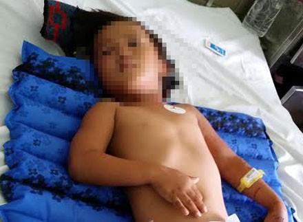 Kết quả CT cho thấy bé bị xuất huyết não với lượng máu ít. Ngoài ra bị xây xát nhiều trên cơ thể. Bé Luân đã được truyền 1 đơn vị máu. Trước đó, cũng tại Bệnh viện đa khoa tỉnh Trà Vinh, bé cũng được cho truyền dịch và thuốc giảm đau.