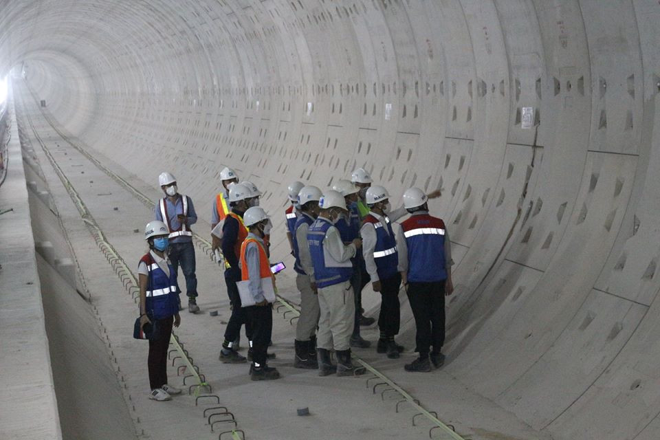 Đường hầm metro đã nối thông với đoạn đường sắt đi trên cao. Qúa trình thi công, đội ngũ chuyên gia, kỹ sư và công nhân luôn đảm bảo công tác phòng chống dịch Covid - 19