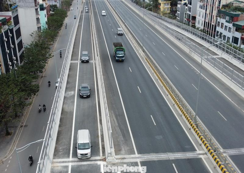 | Xe đi lên, xuống đường trên cao qua đường kết nối từ nút giao Cổ Nhuế (Công viên Hòa Bình). |