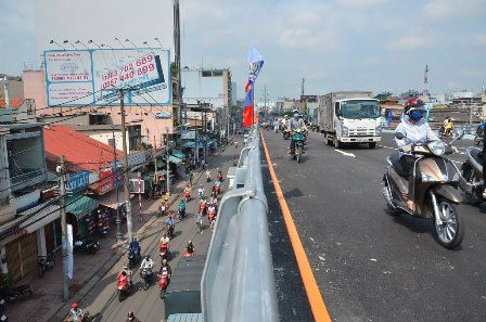 | 8h sáng 19/10, TPHCM tiến hành làm lễ thông xe cầu vượt tại vòng xoay Cây Gõ. |
