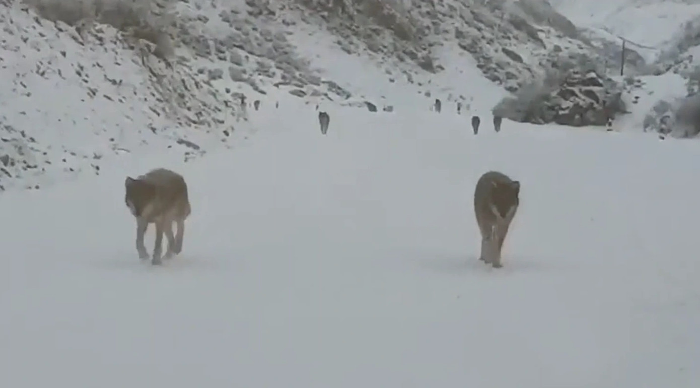 Một nhóm du khách khi lái xe tham quan hồ Sayram, gần dãy núi Thiên Sơn, tỉnh Tân Cương (Trung Quốc) đã rơi vào tình huống giống như trong một bộ phim sinh tồn, khi chiếc xe của họ bất ngờ bị bao vây bởi một đàn sói, trong khi tuyết rơi trắng xóa khung cảnh xung quanh.