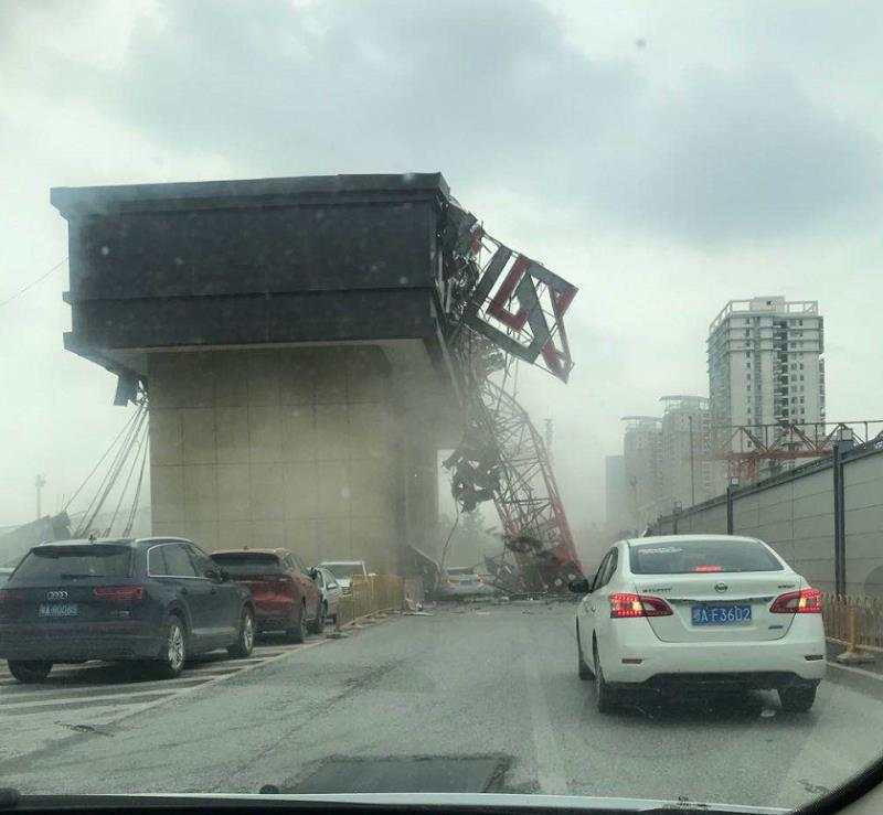 Theo RT, vụ tai nạn xảy ra lúc 9h30 ngày 9/6, khi một chiếc cần cẩu bất ngờ đổ sập xuống cao tốc ở Vũ Hán (tỉnh Hồ Bắc, Trung Quốc).