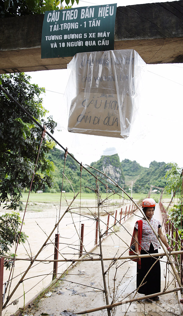 Đang trên đường từ bản Phang đi ra QL6 về huyện Tuần Giáo, bà Cả Thị Lý (SN 1964, bản Phang, xã Chiềng Đông, Điện Biên) cho biết, dù nguy hiểm nhưng không còn cách nào khác phải đi qua cây cầu sắp đổ này.