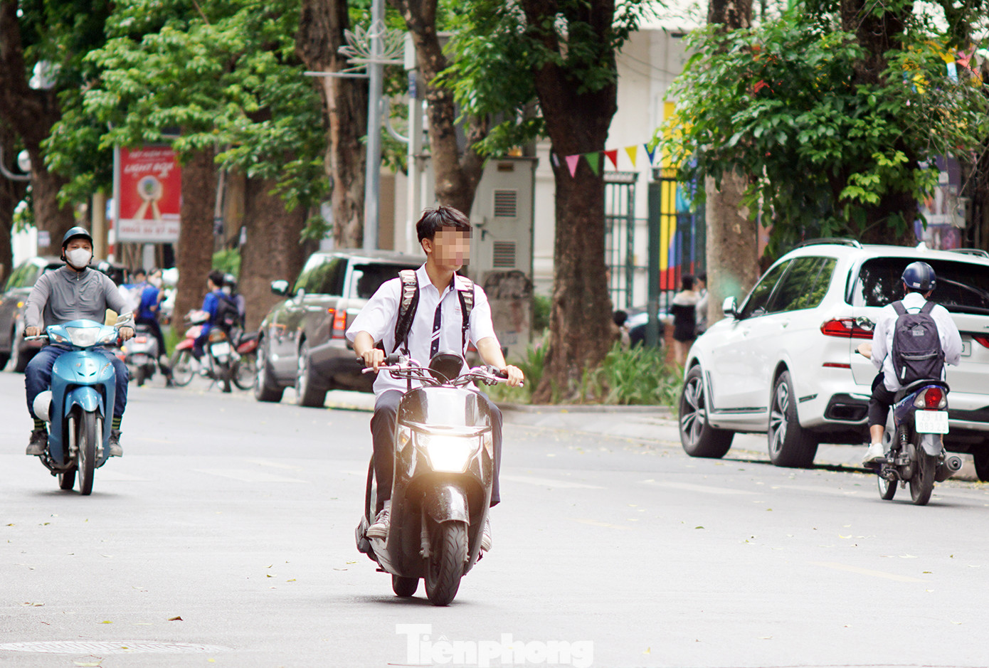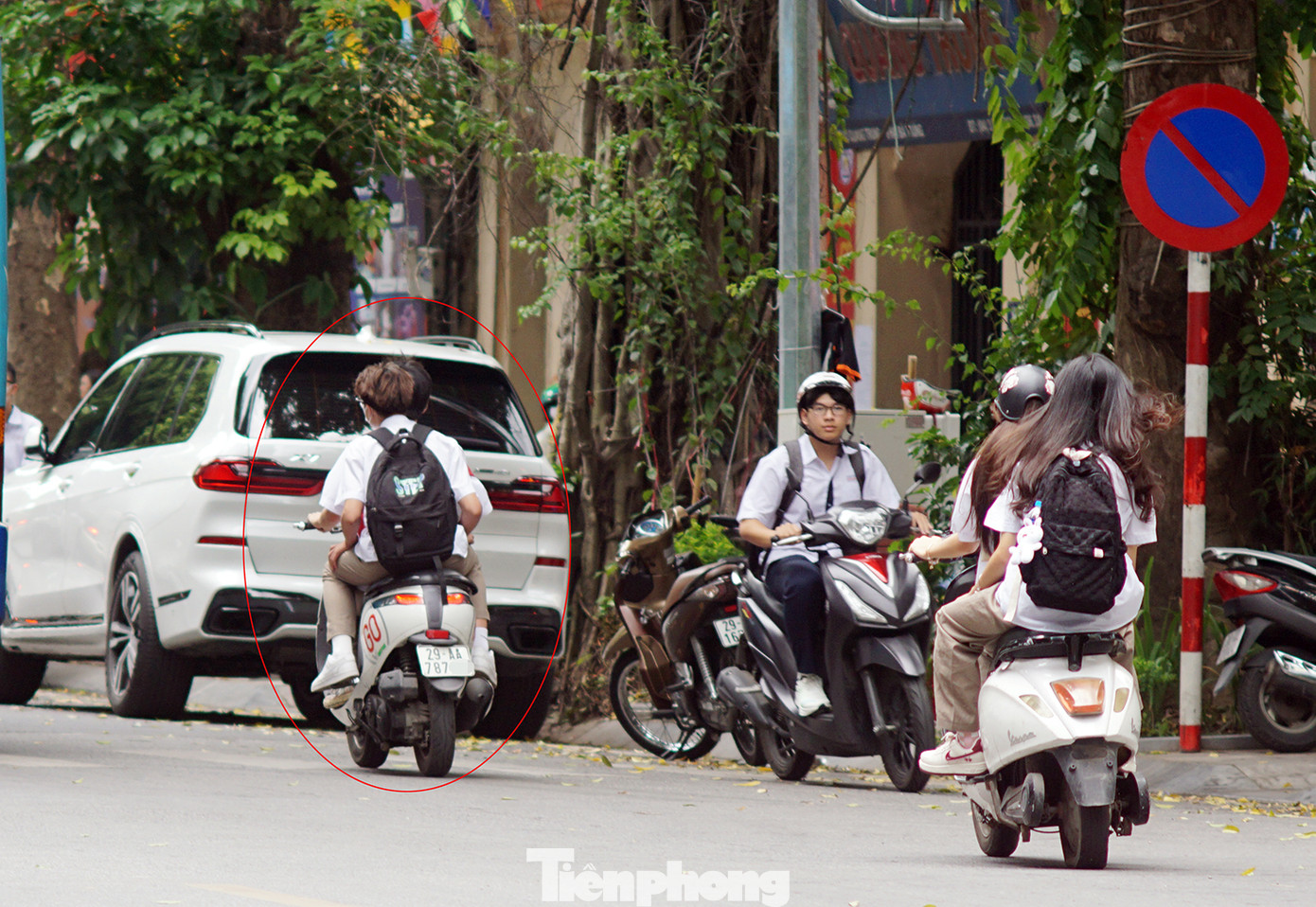 | Trong cùng ngày, theo ghi nhận của phóng viên, trên một số tuyến phố trung tâm Thủ đô, tình trạng học sinh, sinh viên điều khiển xe máy, xe điện tham gia giao thông rất nhiều. Trong số đó, nhiều em không đội mũ bảo hiểm gây mất an toàn. |