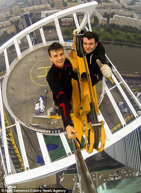 Ivan Semenov, chàng trai 23 tuổi, đến từ Moscow, cùng những người bạn “liều lĩnh” của mình, chinh phục tòa nhà cao nhất nước Nga mà không có dụng cụ an toàn hỗ trợ. Trong một khoảnh khắc gây sốc, Semenov thậm chí còn nắm chặt tay cô bạn gái của mình đang treo lơ lửng giữa những khối nhà, cách mặt đất chừng mấy trăm mét dù cả hai không thắt dây đeo an toàn.