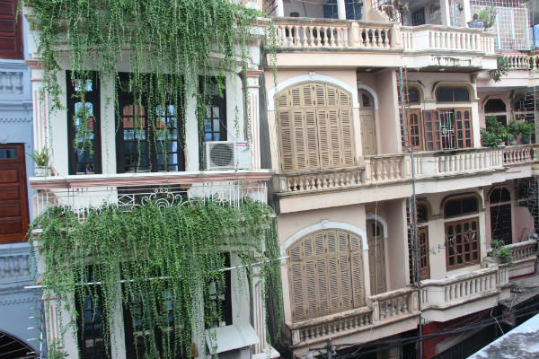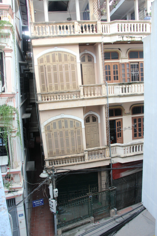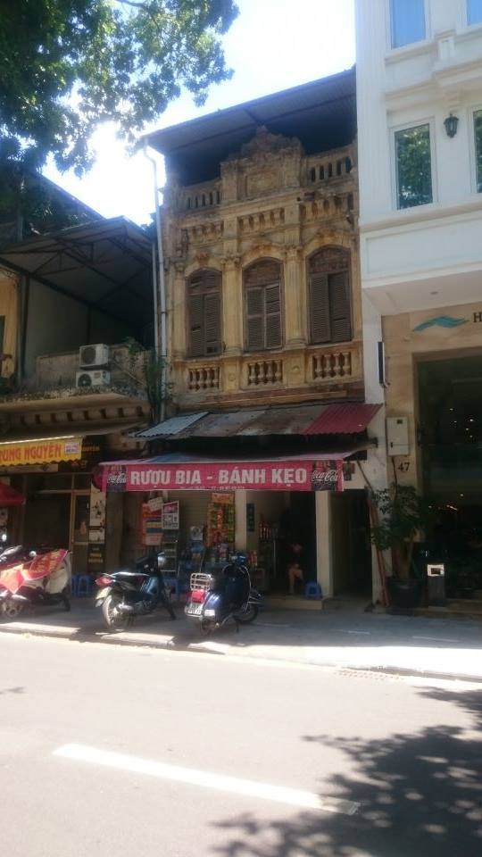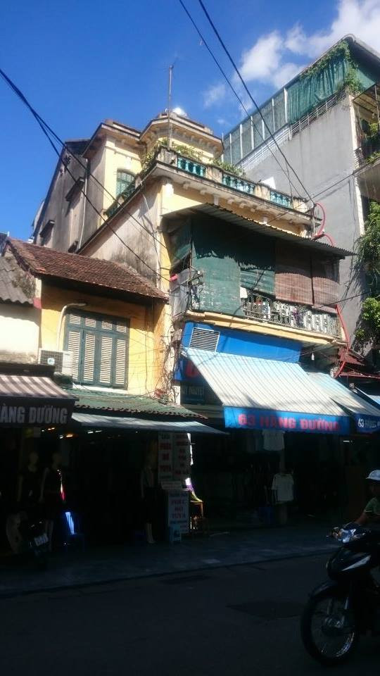 Một căn nhà trên phố Hàng Ngang, bong tróc vôi vữa, lộ dầm ban công