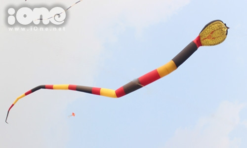 Những con diều có kích thước “khủng” thu hút rất nhiều sự chú ý khi được thả lên. Trong ảnh: Con diều hình rắn với chiều dài hơn 60m, ngang 4m.